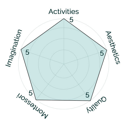 Designed to grow with your child, each box has a range of difficulties appropriate for ages 3 to 6 and even beyond! (Just like a Montessori classroom, this makes multiple child lessons easy)